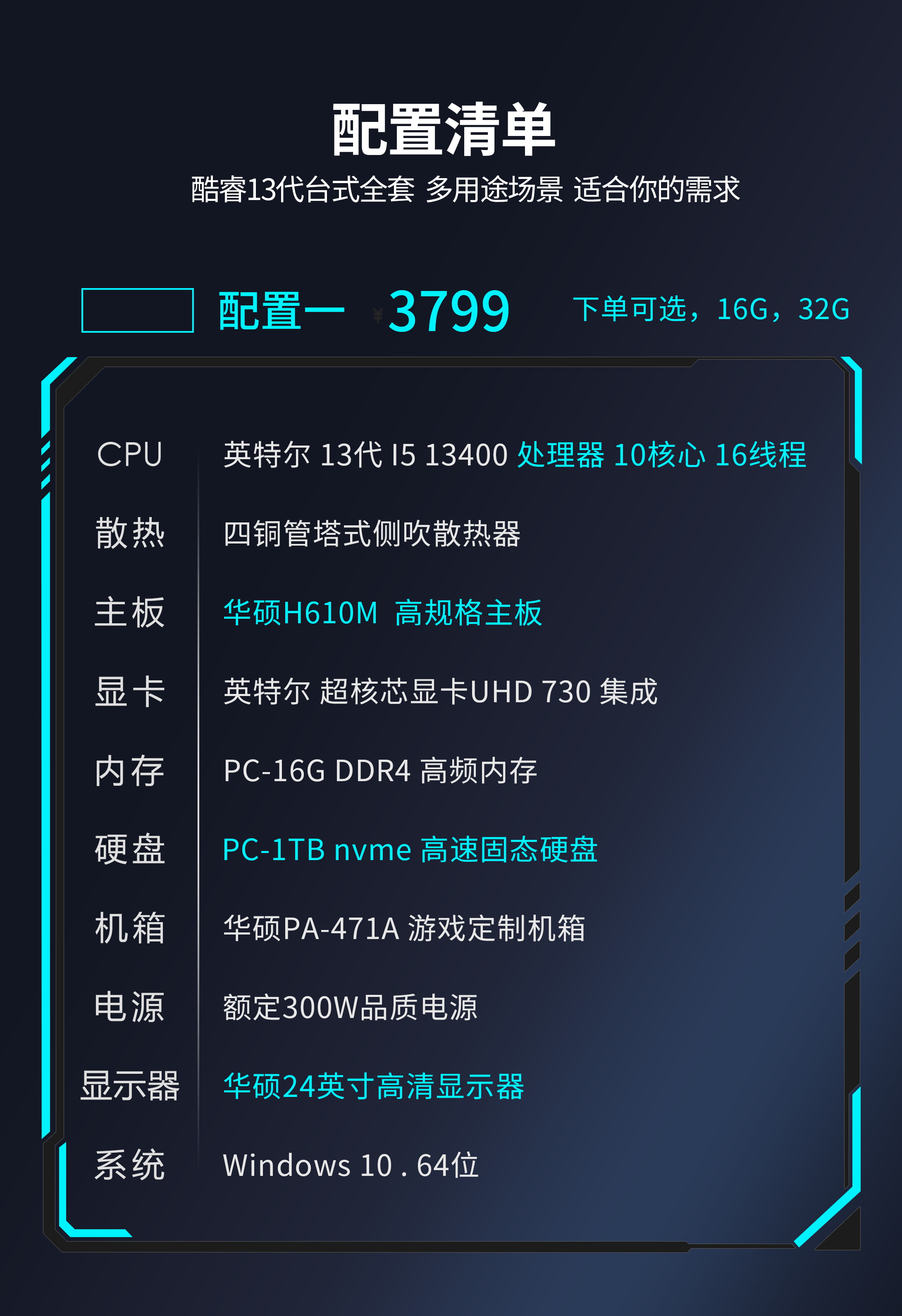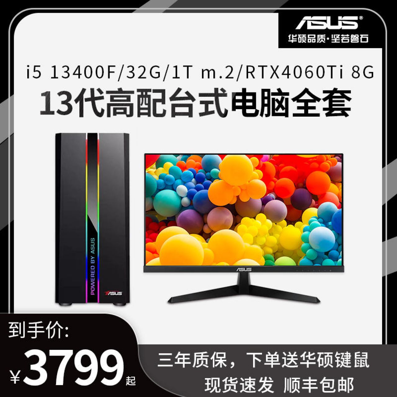 华硕台式电脑13代i5 13400F家用游戏设计高配办公台式机全套整机