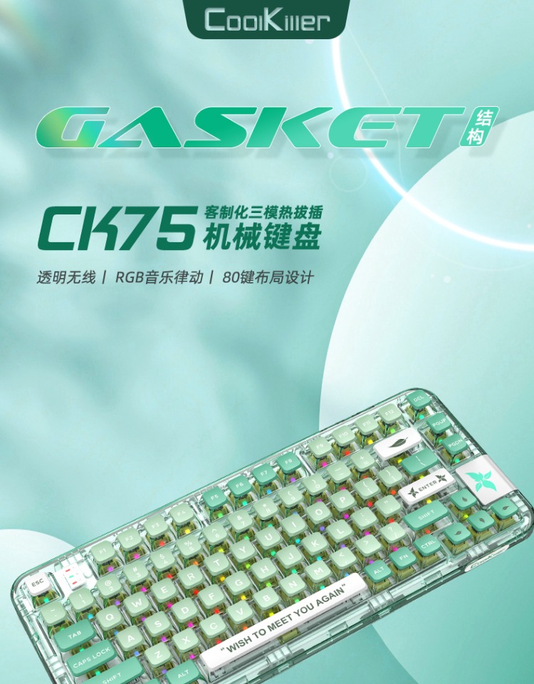 coolkiller透明机械键盘CK75三模客制化蓝牙无线游戏电竞蓝牙有线