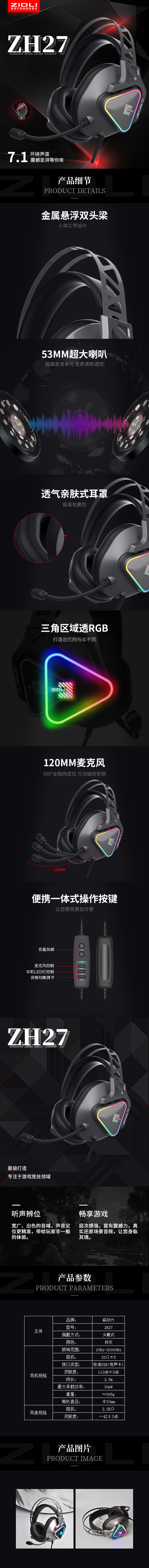ZIDLI磁动力ZH27电竞吃鸡游戏耳机 USB7.1头戴式麦网吧咖专用线控